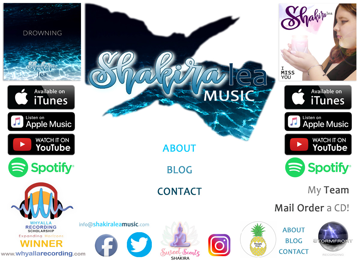 Contact Shakira Shakira's Blog About Shakira Visit Whyalla Recording Scholarship Shakira on Insta! Shakira on Twitter Pineapple Prints Shakira online! CD Mail Order NOW! Sweet Scents by SHAKIRA Stormfront Productions! Shakira on Facebook! Email Shakira! Shakira on Youtube! Shakira on iTunes! Contact Shakira! Shakira's Blog! Shakira's Team! About Shakira!